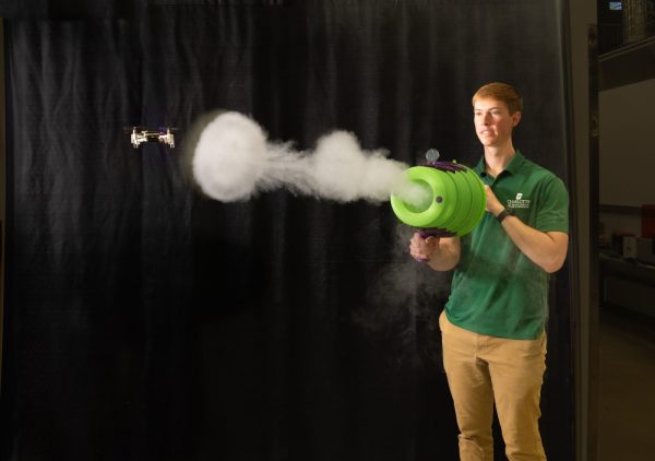 Among the many interesting parts of the job was “blasting a hovering drone using an air vortex cannon to learn how the drone responds,” said VanHorn. “This helps us improve the resilience of smaller drones in sudden wind gusts.”