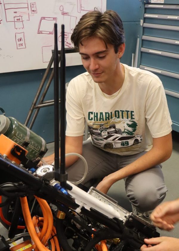 The 49ers Racing EV team is a student-run organization at the University of North Carolina at Charlotte. The team designs, manufactures and tests a fully electric formula-style race car each year in anticipation of the annual Formula Society of Automotive Engineers competition at the Michigan International Speedway. Charlotte’s strong motorsports industry partnerships serve as the foundation for the student team, which is based in the Alan Kulwicki Motorsports Laboratory on the Charlotte campus.